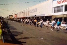 Twelve months later and the 1994 National Line Dancing Championships at Oxley Bowling Club would exceed all expectations with a record number of entrants from throughout Australia. The Australian Line Dancers (ALD) would also host the inaugural Longest Line down Peel St in Tamworth. Pictured below are three of the ALD dancers and organisers, Tony Coggan, John Taverner and Tony Burns.